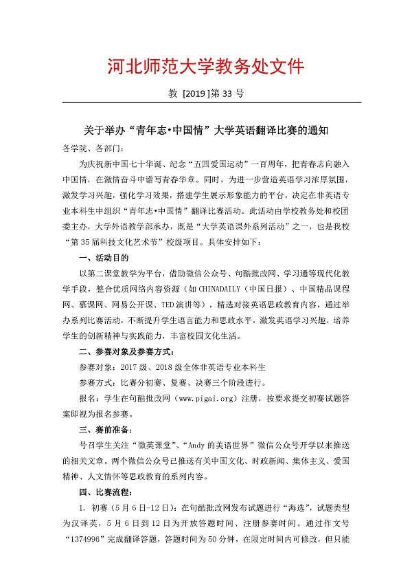 【通知公告】关于举办青年志·中国情大学英语翻译比赛的通知